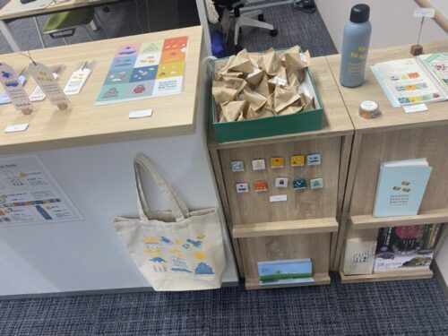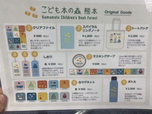 こども本の森 熊本を一旦出て県立図書館内に入ってすぐ左の事務室にてオリジナルグッズを販売しています。