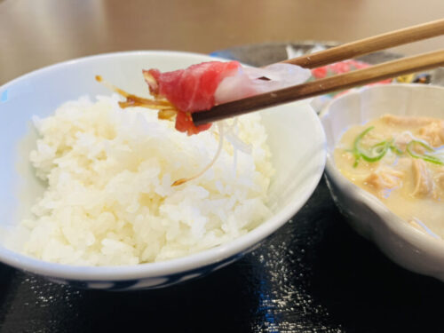 ホカホカの白ご飯とよく合うー!