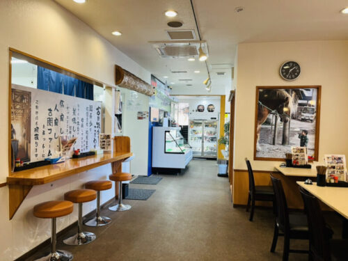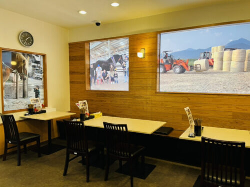 木目調と白を基調にした落ち着く店内で、壁には馬や牧場の写真や想いがたくさん貼られていました。