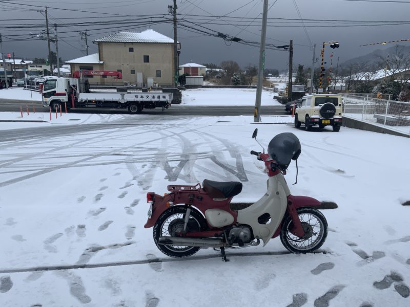 何言ってんの、この人。雪の中原付で阿蘇とか死にますって。道路も凍ってるでしょ。車ならまだしも原付は無理。