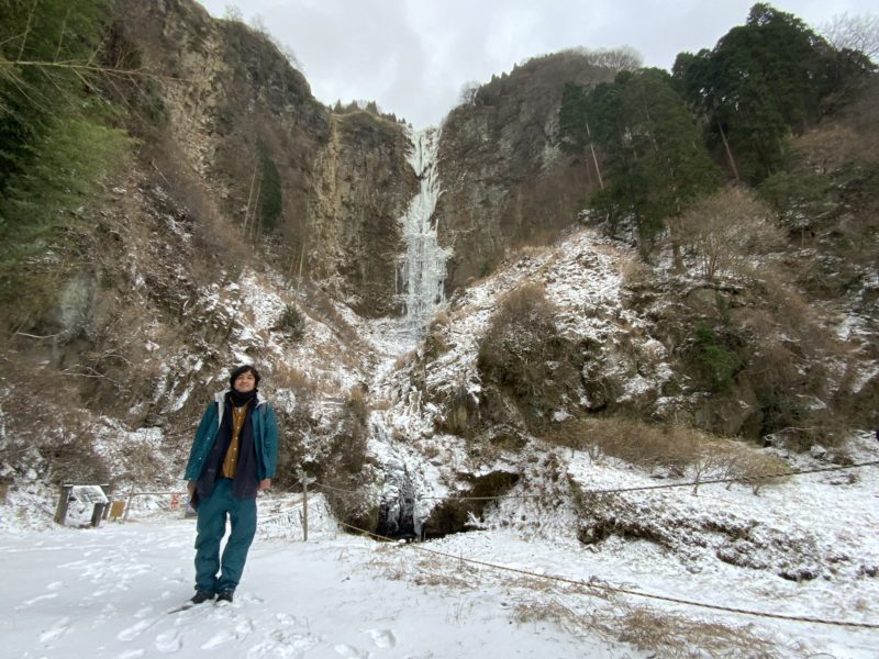 雪景色の中、凍りつく滝は圧巻。幻想的な雰囲気で、自然の雄大さを思い知り、苦労してきた甲斐があったと感じました。