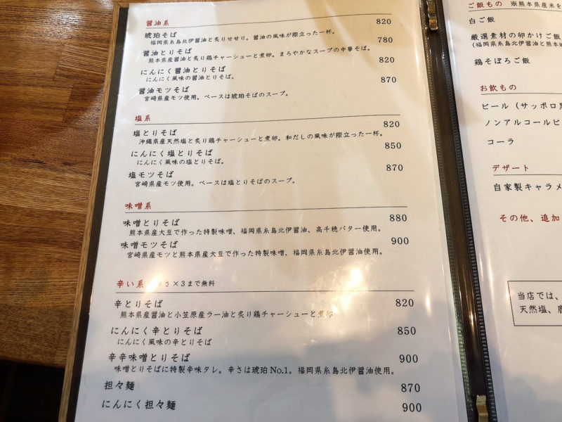 豚骨だけがありません。熊本ではなかなか見ないメニュー構成。