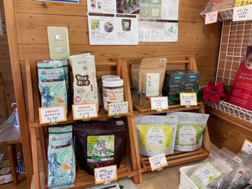店内には、手作りのパンやクッキーのほか、オーガニックのパスタ麺やトマトソースなども並んでいます。