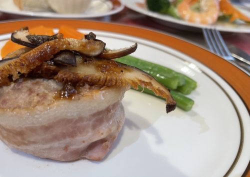 メインは、ハンバーグのベーコン巻き椎茸を添えて(←伊藤が勝手に命名)