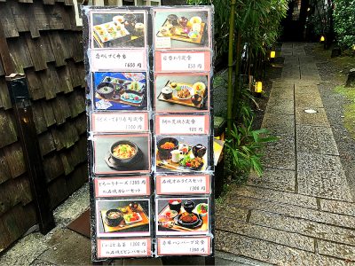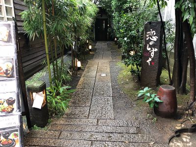 石畳を歩いて少し奥に入るとにお店の入り口があります。少し歩いただけでもなんだか癒されますね。入り口の竹あかりが可愛くてオシャレですね。