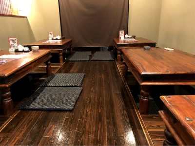 中に入ると、掘りごたつ式の座敷に案内されました。木目調の見た目がとても落ち着きます。