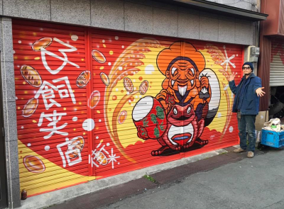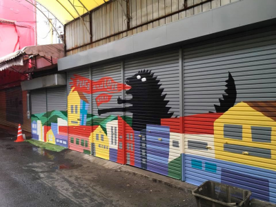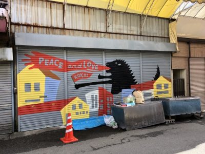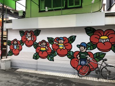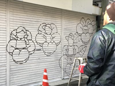 もちろん勝手に人のものに描くわけにはいきませんので、商店街の理事会で提案し、各オーナーさん、そして商店街に店舗を構える既存のオーナーさんにも了承をとって実現できたこの企画。