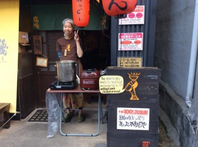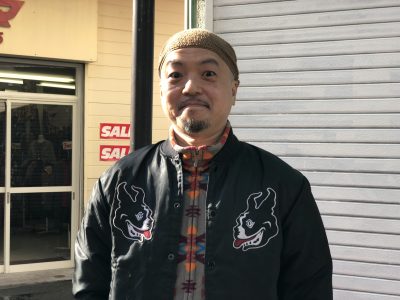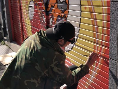 肉の都一さんの横のシャッターに描くはBrakichiさん。タイミングが合わずご本人に話を聞くことができなかったのですが
