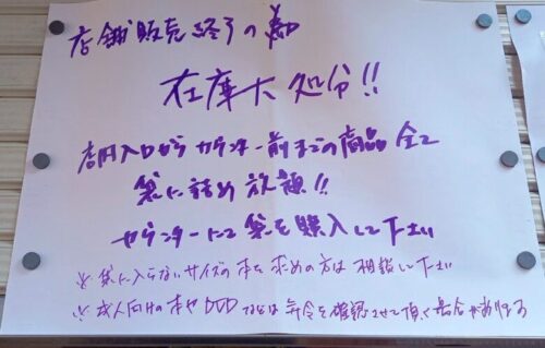 元々1冊100円均一でお得満載のお店でしたが、閉店に伴い価格破壊では?レベルの大サービス。