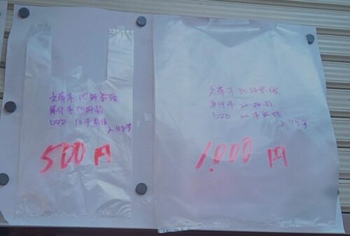 あ、ちなみに行くときはエコバッグ系(頑丈)を持っていくのをオススメします。