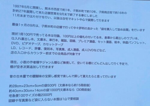 【熊本市中央区】子飼商店街の古本屋「古懐書林」が閉店。ショックでお店に押しかけたら、めちゃめちゃお得な詰め放題フェアが開催中でした【閉店情報】