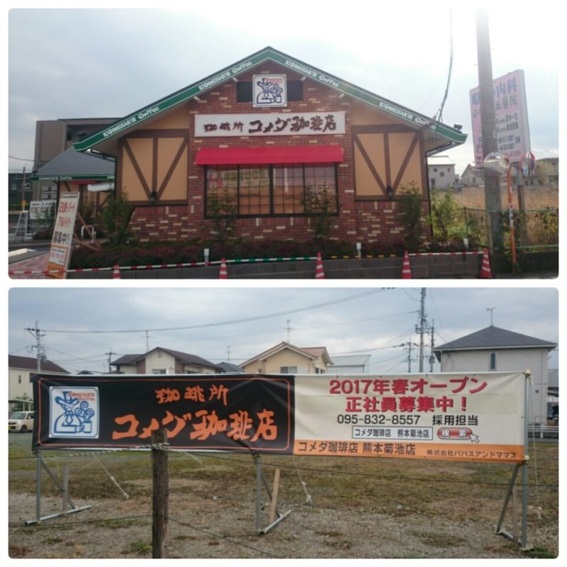コーヒーチェーンの「コメダ珈琲店」が来年2017年に菊池と合志にオープンすることが分かりました。