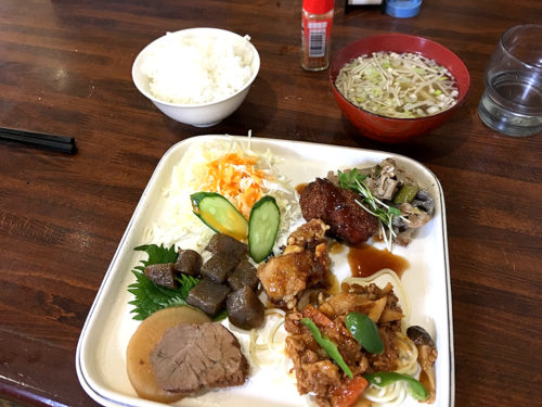 定食メニューは唐揚げ定食400円、しょうがやき定食500円など、どれもお手軽価格!その中でもお店オススメの日替わり定食を食べてきました。