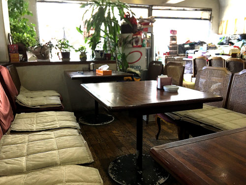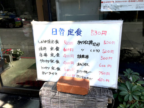 表には看板がありません。のぼりやメニューが出ているので、喫茶・定食屋なのはひと目でわかります。