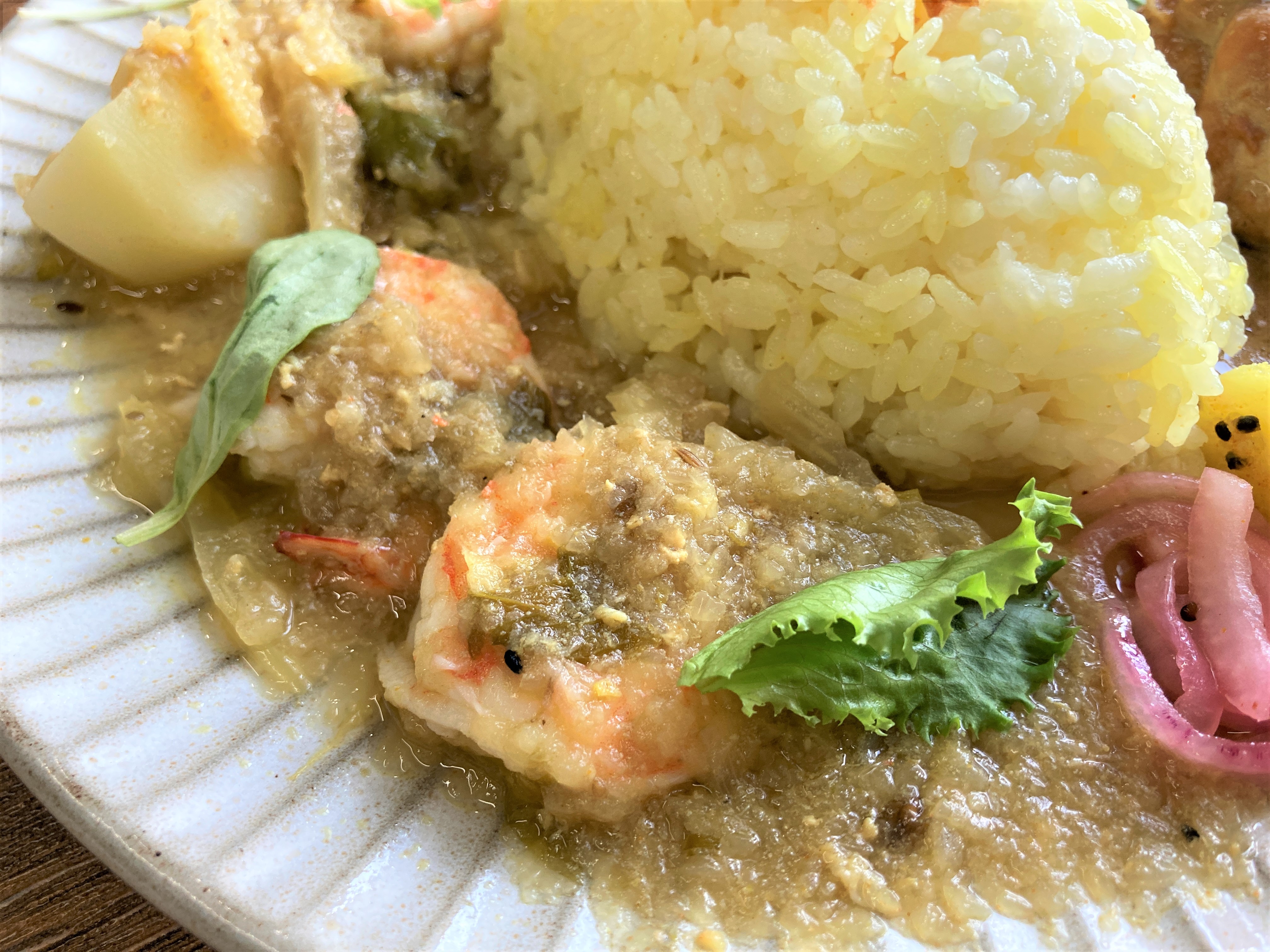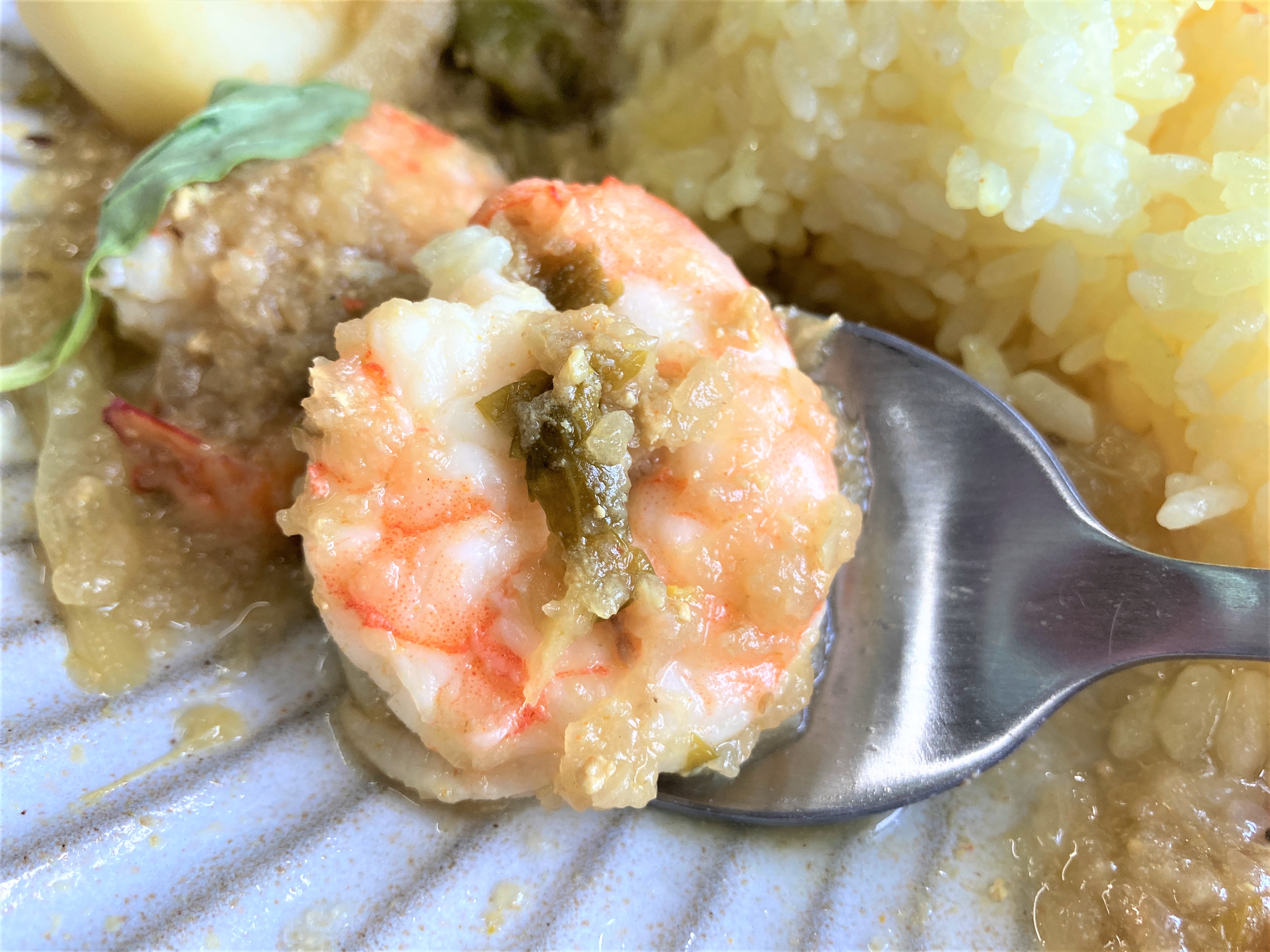 色んなカレーを愉しみたい、そんな方にはあいがけがおすすめです。えびのカレーとチキンのカレーを食べましたが、どっちも異なる美味しさ。