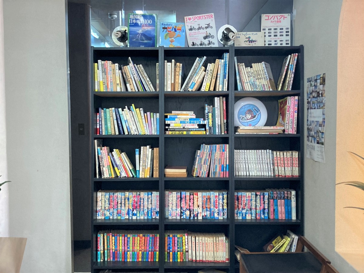 そしてちょっと昔の喫茶店を彷彿させるこの本棚。初めましてなのに懐かしい感じがします。