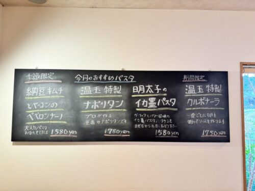 壁のメニューは季節限定パスタの数々。