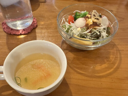 まずはスープとサラダ、ドリンクも付いています。