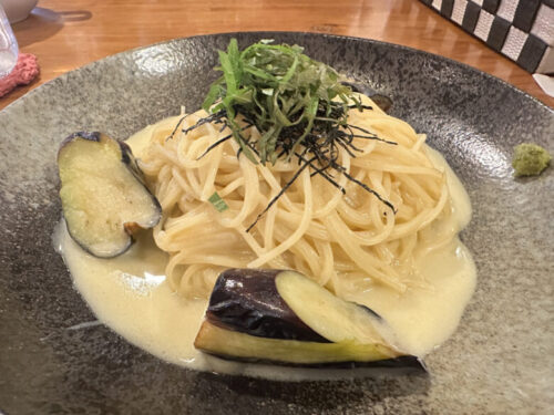 日替わりパスタランチ「茄子入りコムシロンパスタ」(1580円)を注文しました。