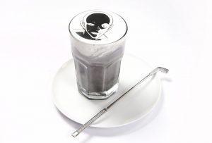 黒ごまスムージーらしくマドラーは凶器をイメージなのでは無いかと思われます。