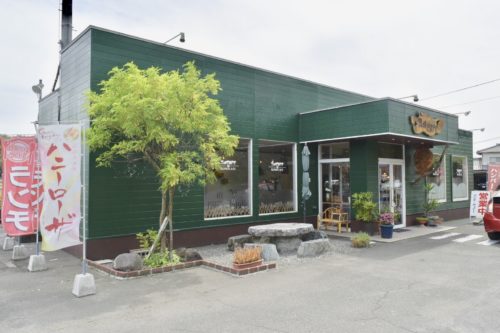「コノcafe」は、国道208号を玉名市方面に進んだ左側にあります。玉東町役場の近くにある深緑の外観が目印です。