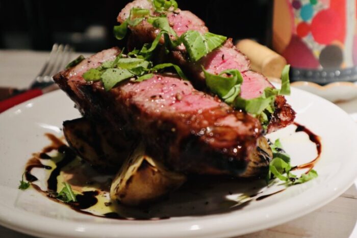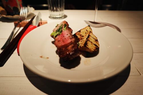 赤ワインにお肉。じっくりじっくり焼いてくださったお肉。