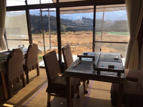大きな窓から雄大な山の景色が眺められ、なんとものどかでゆったりした気分になれます。