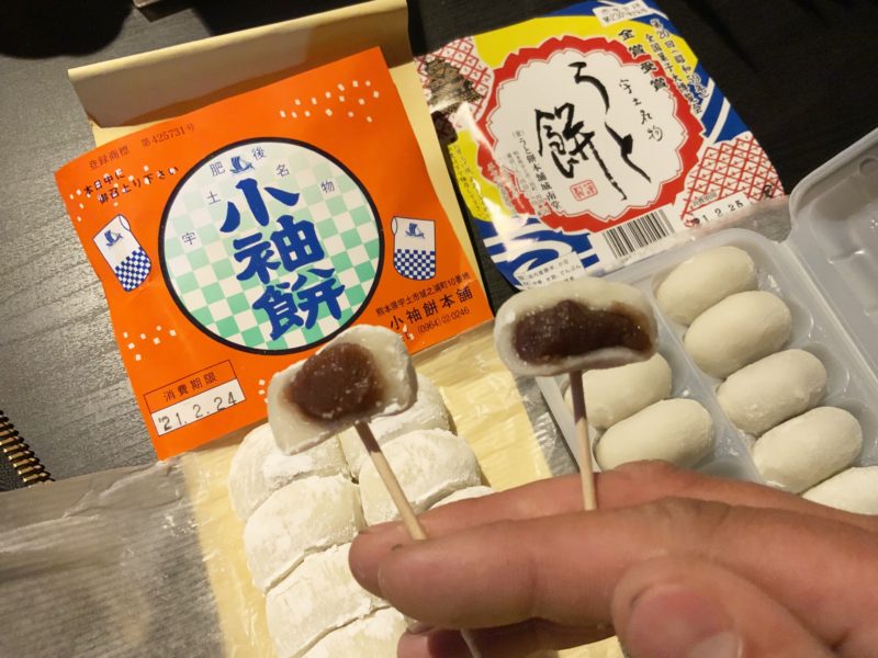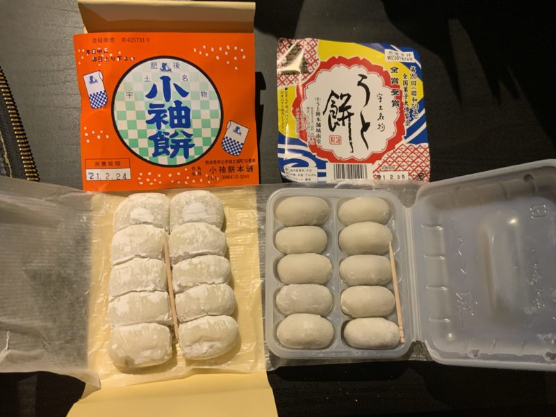 宇土市のお土産として名高い「小袖餅(こそでもち)」と「うと餅」。