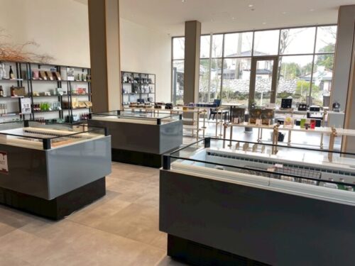 建物の中にはストアがあり、みなみ阿蘇のクラフトビールや、珈琲回廊のコーヒー、ASOFORETのチョコレートなど、熊本を代表する有名なショップの商品がたくさん並んでいます。県外の方にも喜ばれそうなラインナップで、こちらではショッピングを楽しめます。
