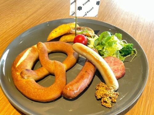 (ソーセージつきプレート&プレッツェルソフトクリームは今回、試作中のものをいただきましたが、プレッツェルフェア期間中のみの販売になります)