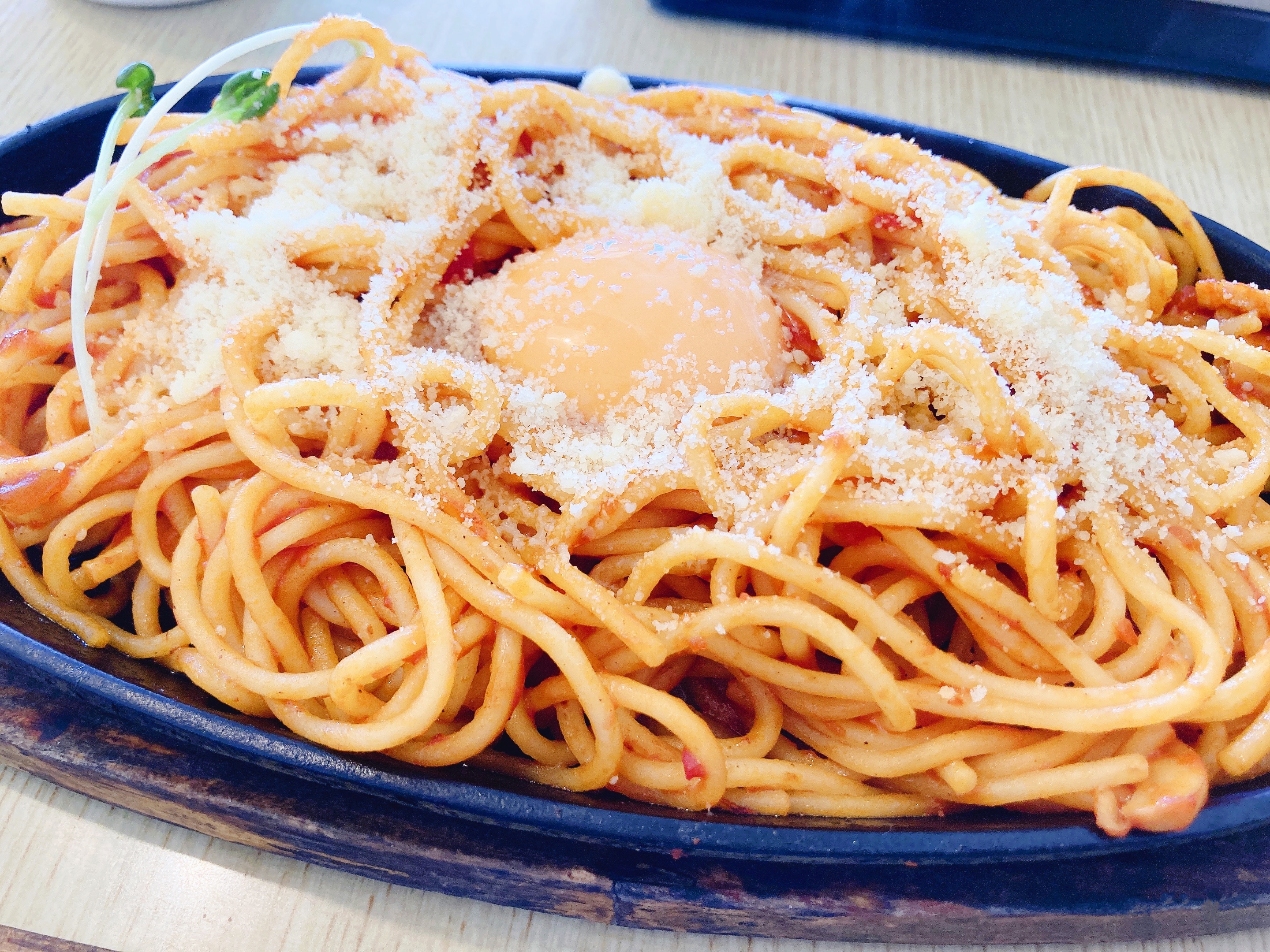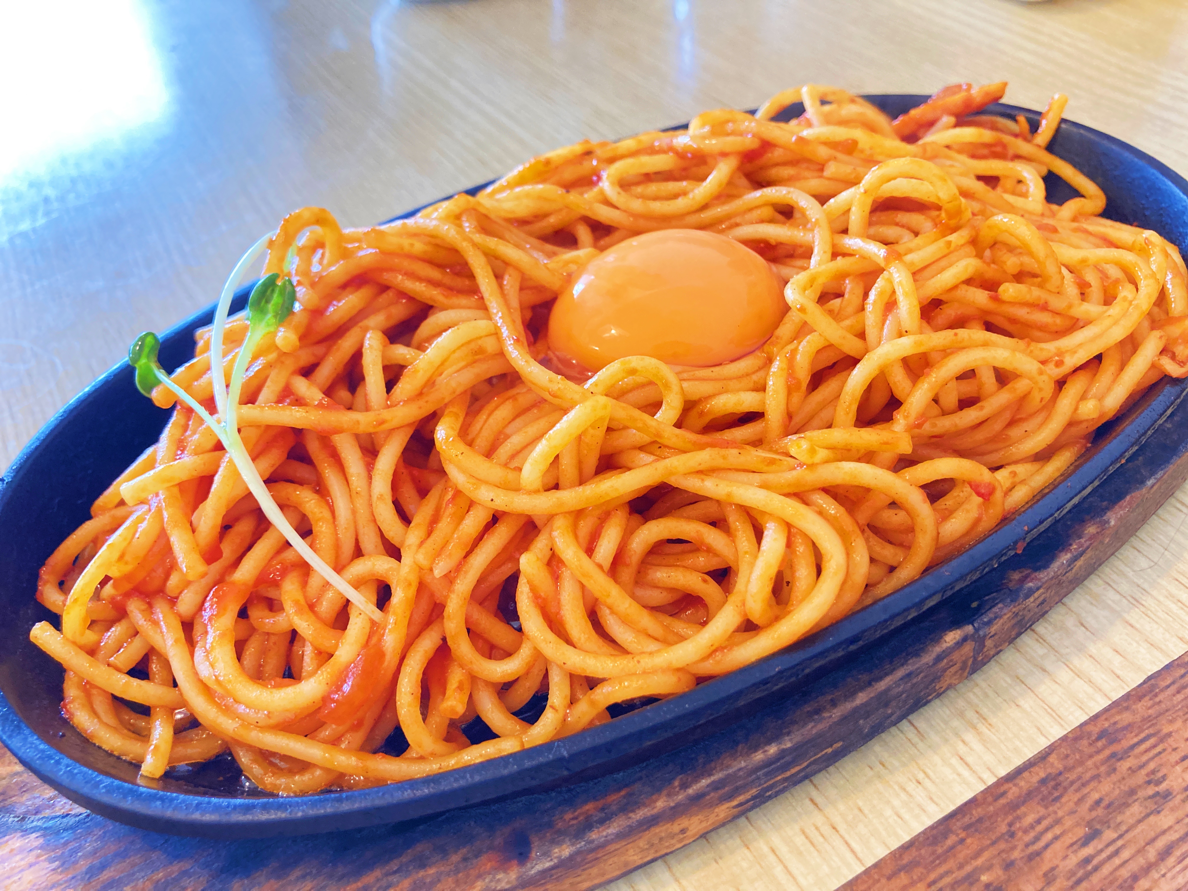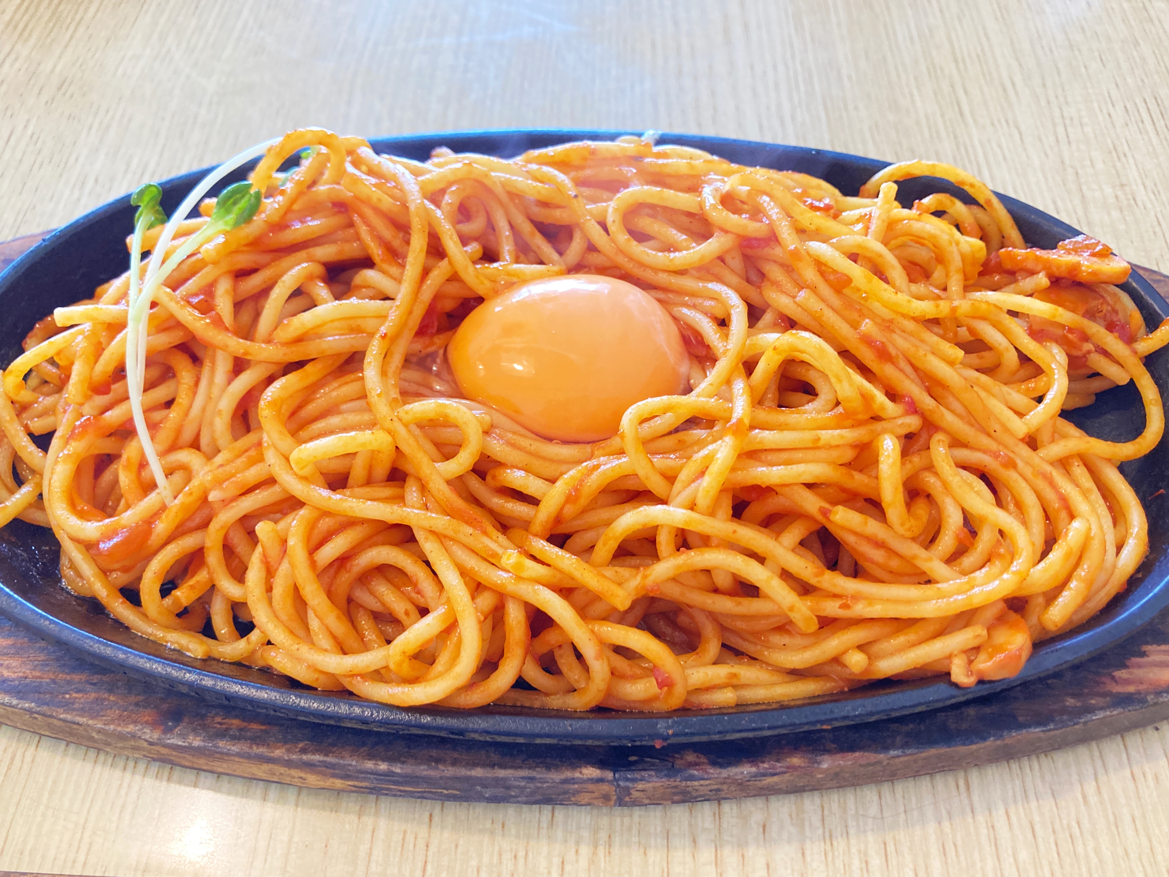 熱々の鉄板に乗ったナポリタンです!