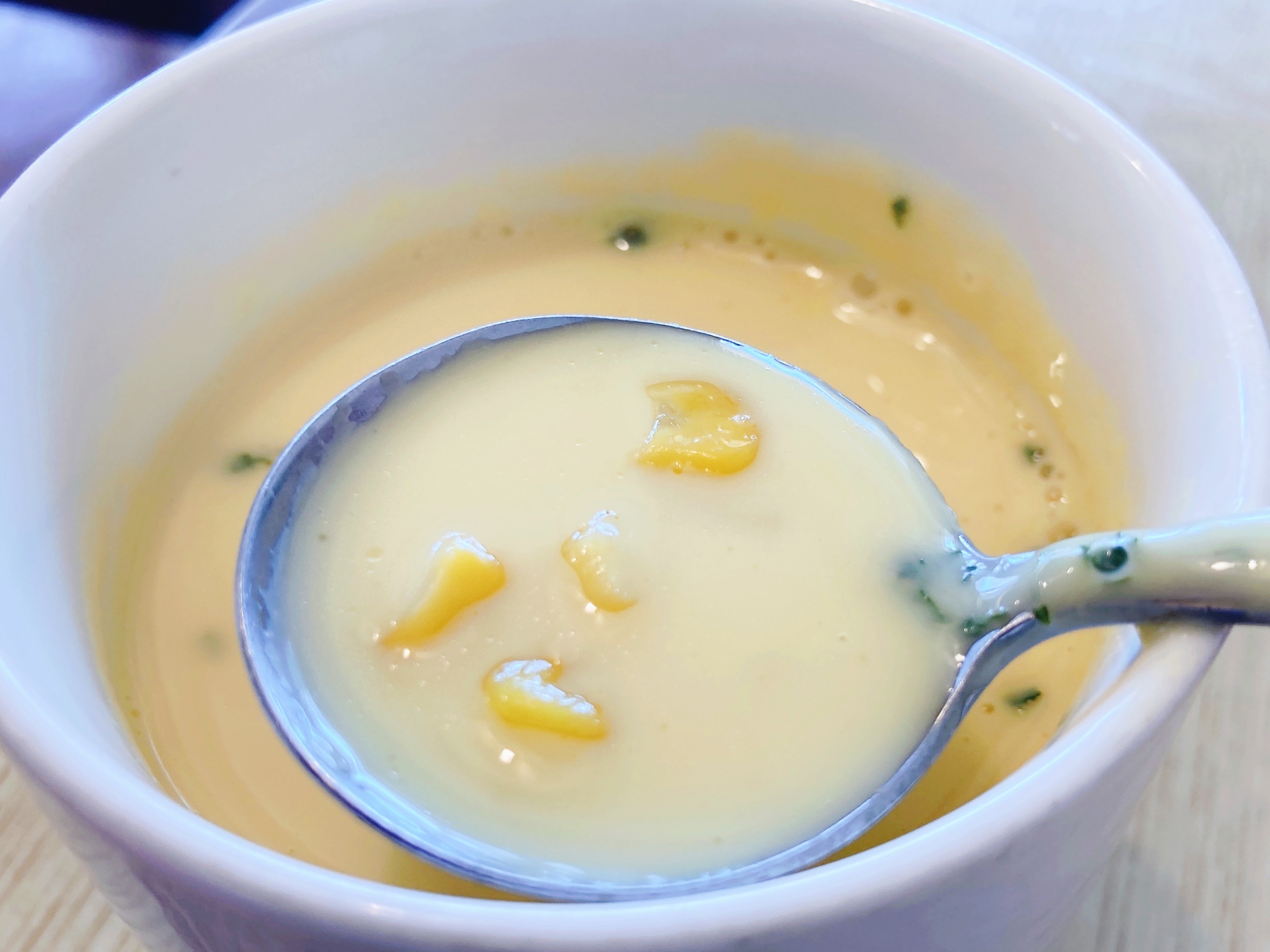 こちら。コーンクリームスープ(カップ)150円。子供の頃好きだったのを思い出し、つい頼んでしまいました。