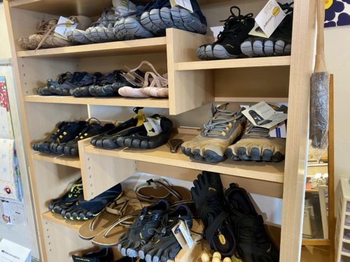 店舗では、限定で「Vibram Five Fingers(ビブラム ファイブ フィンガーズ)」の5本指シューズなんかも販売中。熊本では公式取扱店舗はこちらだけですので、なかなかレアですね。
