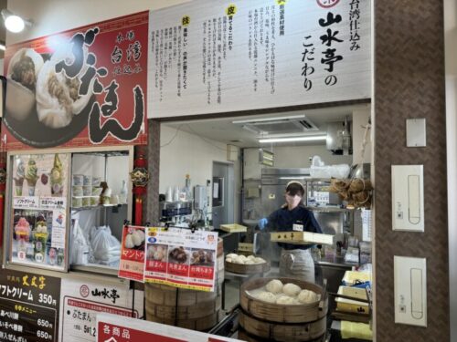 合志市の「合志物産館志来菜彩(しきさいさい)」内に、山水亭のぶたまん類、甘泉処 大文字があるのをご存じでしたか?