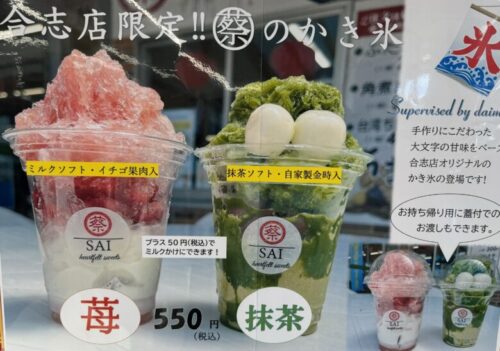 こちらが合志店限定のかき氷。大文字の甘みをベースに作ったオリジナルの商品だそうです。