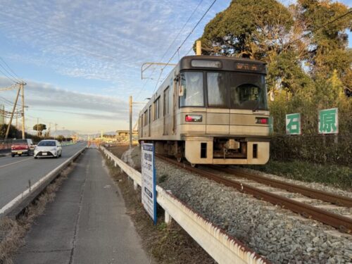 これは、ちょうど、「再春医療センター前駅」に菊池電車が入ってゆくところ。「再春医療センター前駅」は御代志駅のお隣となっております。