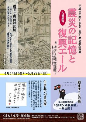熊本県立図書館に併設されている「くまもと文学・歴史館」にて、企画展「震災の記憶と復興エール」が行なわれていました。