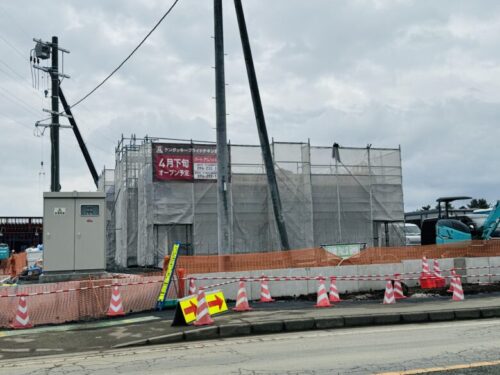 オシャレな感じで建物が出来てきておりました!春にはオープンするでしょうか?楽しみですね!