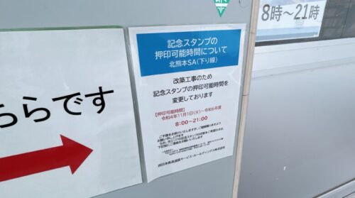 北熊本SA(下り)のスタンプは8時から21時までしか貰えないようです…!あぶねえ!
