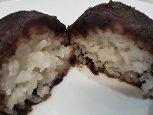 今回は、つぶあんを実食。ふっくらとしたもち米で、一粒一粒のお米の形がそのまま残っています。口の中でもち米の食感を楽しめて、程よい甘さのつぶあんと塩気があるもち米の相性が抜群で、実に美味しいです。