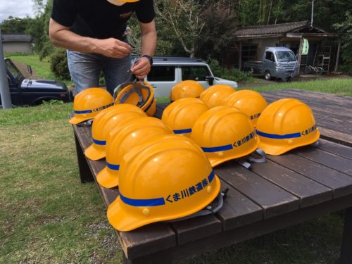 普段はかぶる機会なんてない、「くま川鉄道」のロゴが入ったヘルメットをかぶるだけでも、ちょっと嬉しくなります。