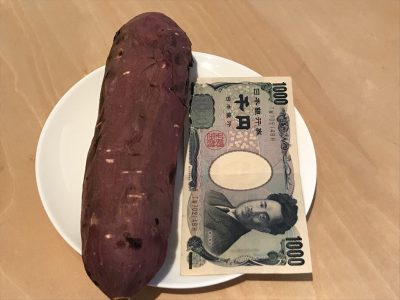お芋は、熊本県大津産のからいもを使用しています。ちなみに焼いてない状態のお芋は150円で売ってありました。