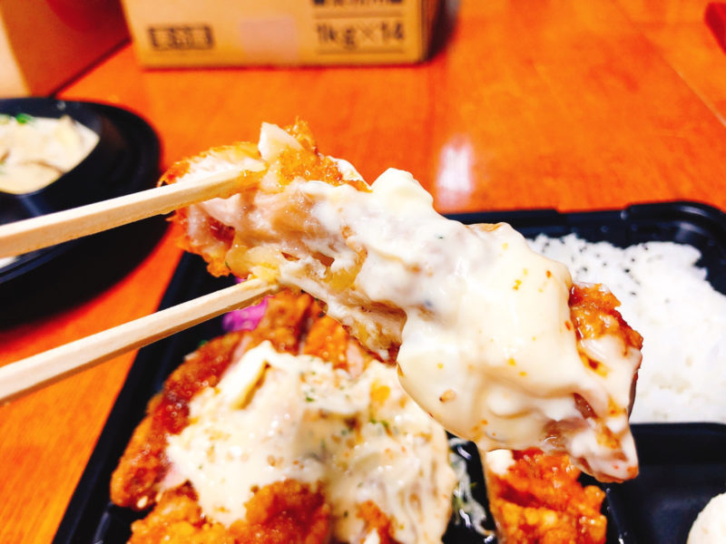 甘酢タレとタルタルソースがマッチしていて、ご飯が進みます。