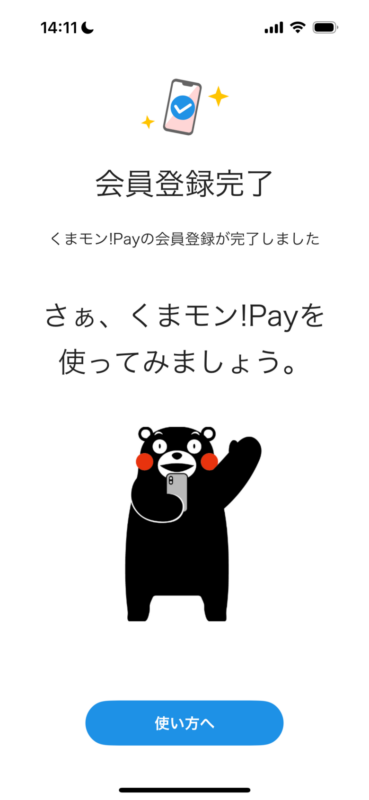 ちなみに「くまも」まで入力したところで、予測変換が出てきますので一番上にある「くまモン!Pay」をタップ。