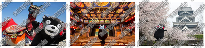 上記サンプルのように、熊本県の名所に出没するくまモンの写真が!これは熊本県の写真家、宮井正樹氏の撮影によるものだそうです!
