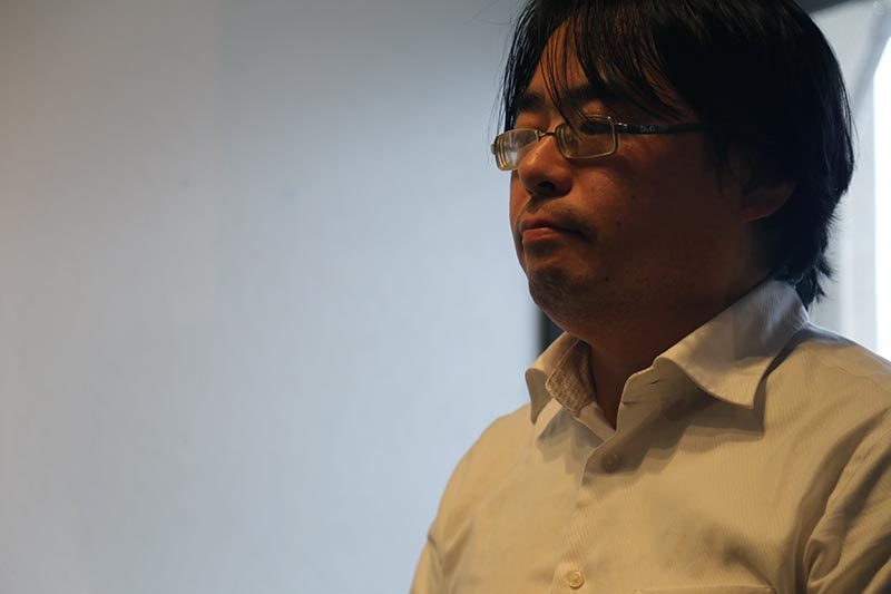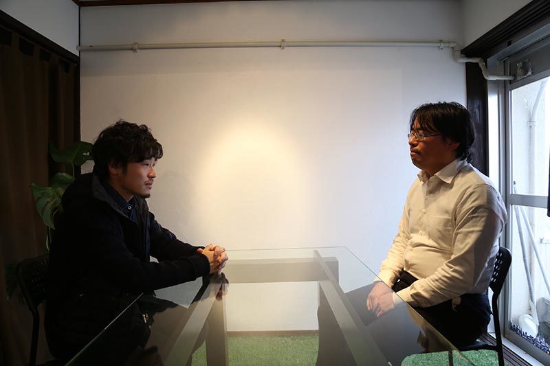 取材開始30分ですでに水色のものに過敏に反応するようになってしまった上野P