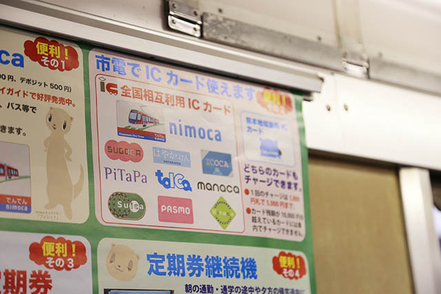 市電内の吊り広告にも、くまモンのICカードが記載してありました。