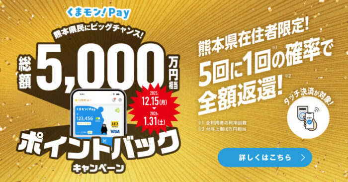 2026年1月31日までの期間限定で、熊本県民向けにこんなお得なキャンペーンが実施されています。