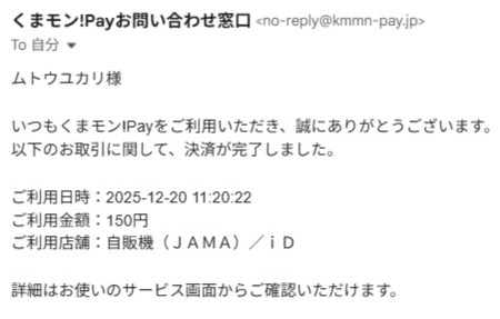 使ったあとはこのように確認メールが届くので、安心ですよ。