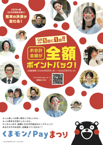 くまモン!Payが大盤振る舞いなキャンペーンを開始!さらには4/25(土)には「びぷれす広場」で豪華景品が当たるイベントばするてたい!